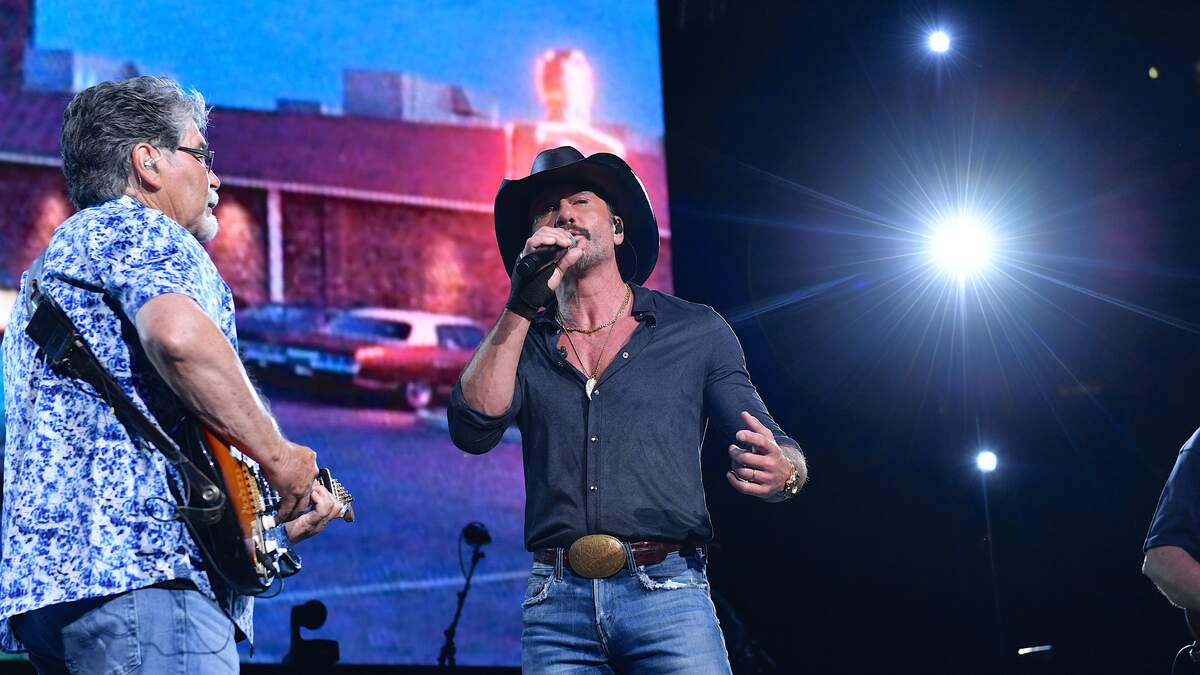 This is the best video with teh closest view of TIm McGraw losing his balance that I could find. Hope he's going to be ok. Look like he will be.